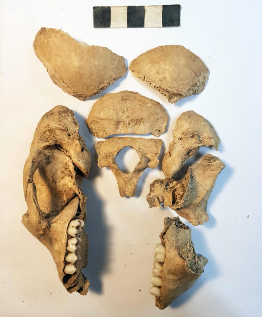 Our animal bone specialist Kevin says “Its wisdom teeth haven’t erupted so it is probably less than 6 years of age but definitely more than 2 years. I think it is likely to be a macaque type, the most famous of which is the variety living on Gibraltar, which is also known as the Barbary Ape. The same type also lives in North-West Africa especially in the Atlas mountains, where no doubt the Gibraltar monkeys originate.”
