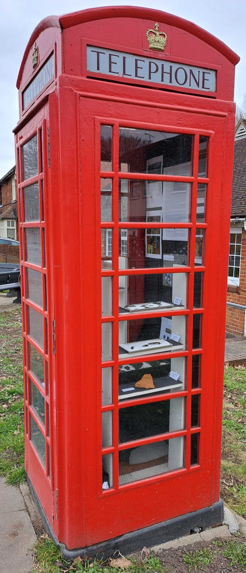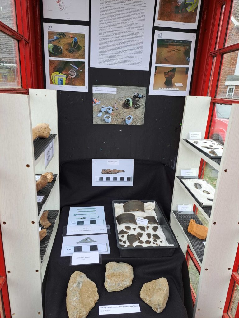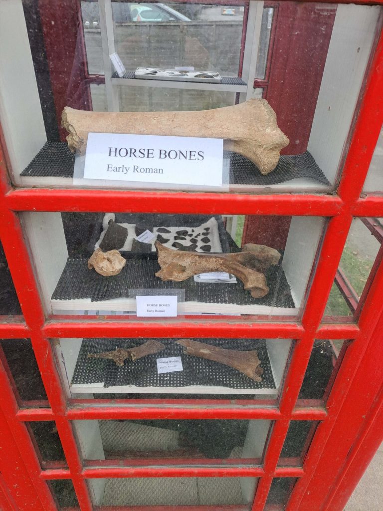 A red phone box in Great Yeldham has been repurposed in an inspired way by the community: as a mini museum with a display of finds from our excavation in the village!