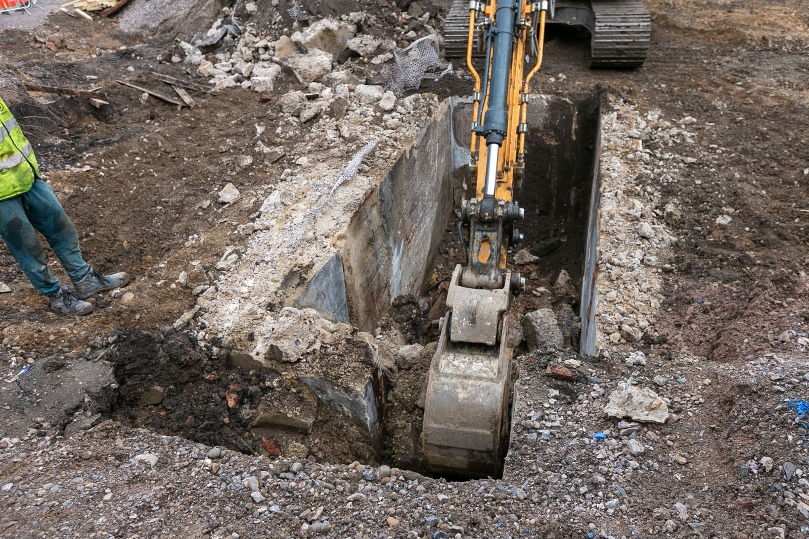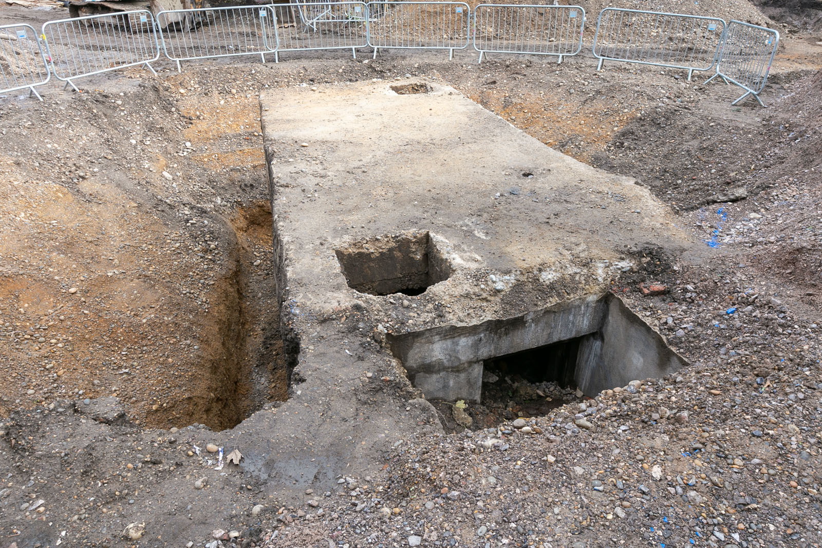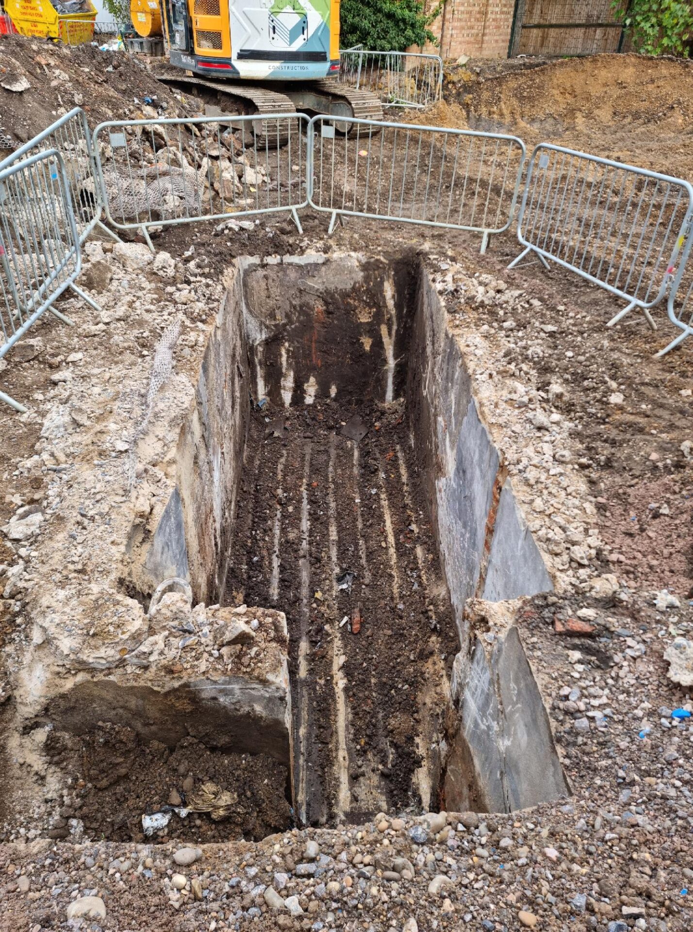 Groundworks contractors in Plumstead have found an unexpected air raid shelter! Our evaluation trenches in different parts of the site had previously uncovered two phases of 19th century occupation.