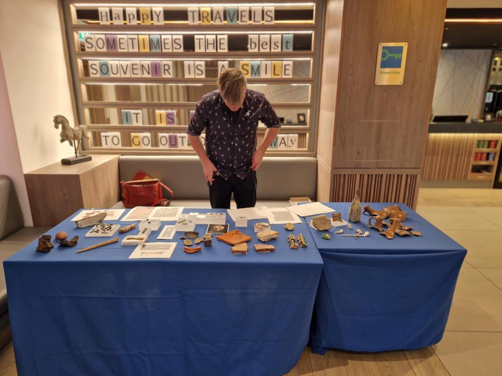 We had a steady stream of interested people at our pop-up display at Hampton by Hilton London City hotel, of finds recovered from excavations prior to its construction. The visitors were a range of mudlarks, professional archaeologists, university students, workmen at the hotel, hotel guests and staff, and many people stayed for 30 minutes to an hour!