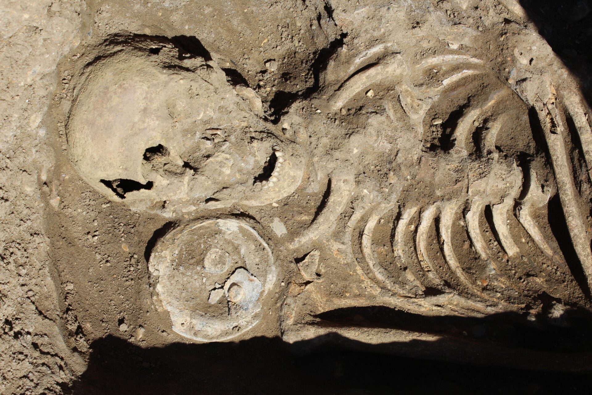 Between 2019 and 2020 several phases of excavation undertaken on the eastern side of the site revealed the eastern end of the medieval Holywell Priory church and further parts of the cemetery. A total of 220 medieval skeletons were exhumed from an area thought to be a cemetery associated with the priory church. All the graves were orientated east-west which suggests that they were Christian burials as expected on a medieval priory cemetery site. The assemblage of human remains included both adults and juveniles, men and women, and included the skeletons of three further priests recognised by a mortuary chalice placed within their graves.