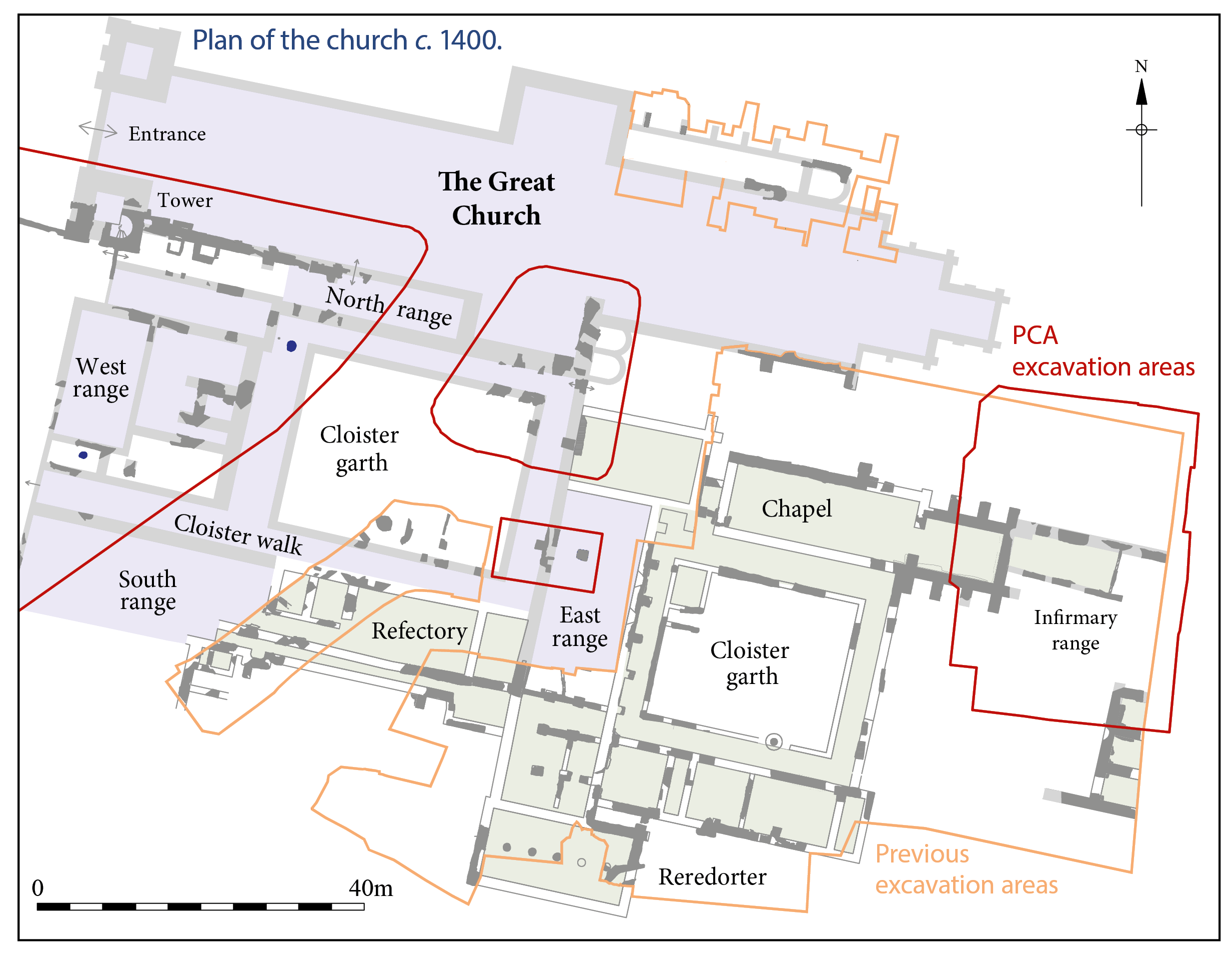 Amongst our findings was evidence for the elusive Saxon ‘minster’, and the Norman and later medieval Cluniac priory (later Benedictine Abbey) church and cloisters, including the southwest flanking tower of the western entrance to the great abbey church.